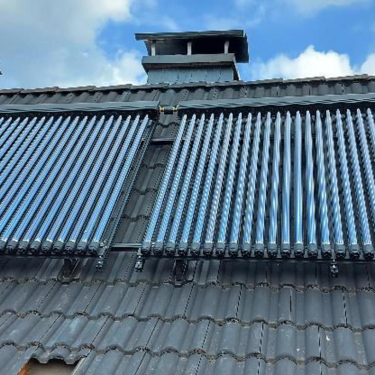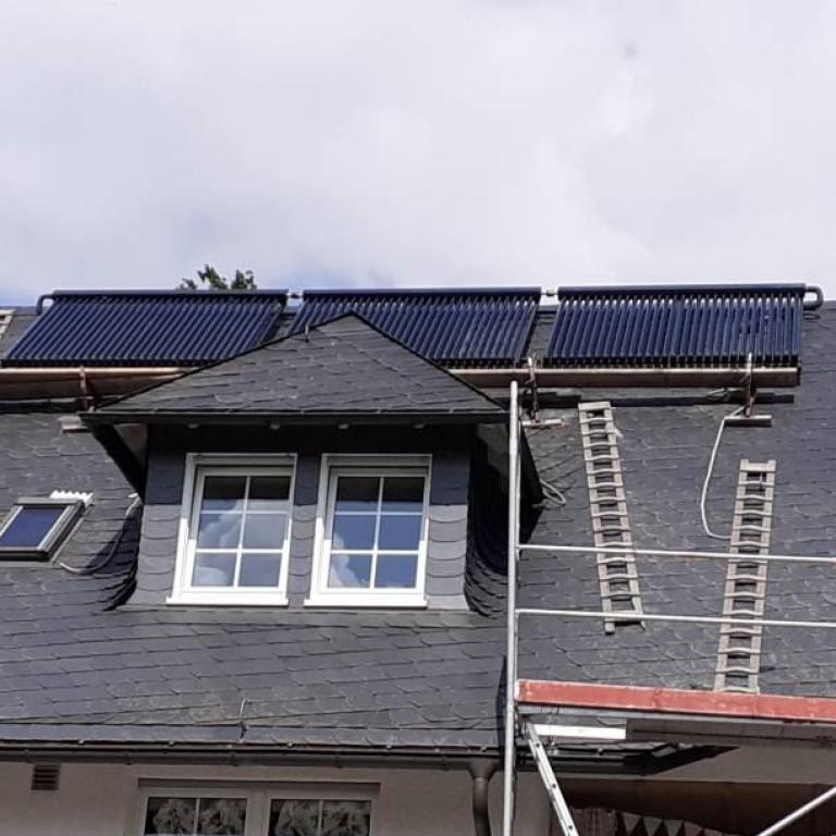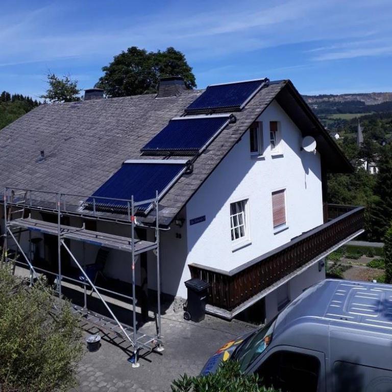 2. Sonnenenergie zur Warmwasserbereitung und Heizungsunterstützung.Die Ersparnis an Öl oder Gas ist in jedem Fall erfreulich: Gut 60 Prozent weniger Energie verbrauchen Sie im Jahr, die sonst zur Warmwasserbereitung für den täglichen Bedarf benötigt würden. Kombinieren Sie die Warmwasserbereitung und die Erwärmung von Heizungswasser, liegt die jährliche Ersparnis bei bis zu 35 Prozent der insgesamt benötigten Energie. Die Dimensionierung der Kollektorfläche richtet sich nach dem tatsächlichen Energiebedarf des Gebäudes. Eine ungünstige Ausrichtung der Dachfläche kann mit zusätzlicher Kollektorfläche ausgeglichen werden.